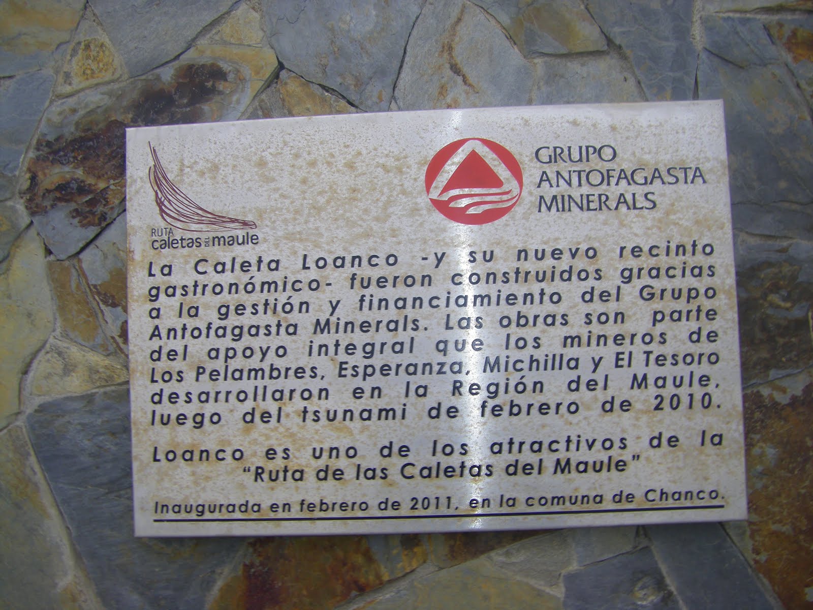 Ruta del Mar project. This is a notable example of one group of Chileans (Grupo Antofagasta Minerals) helping their artisan fishing brothers and sisters recover from the tsunami of February 27, 2010.